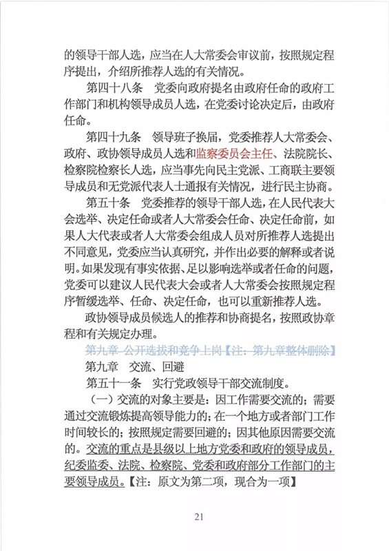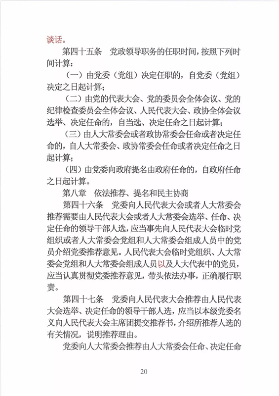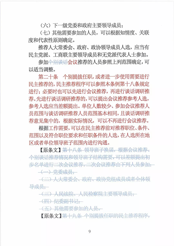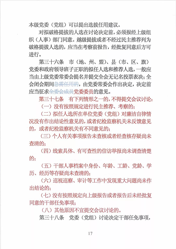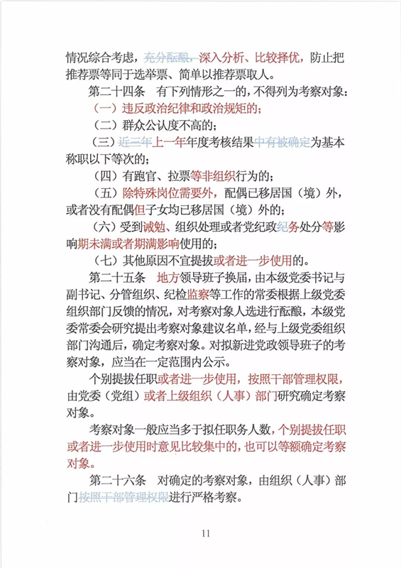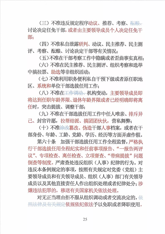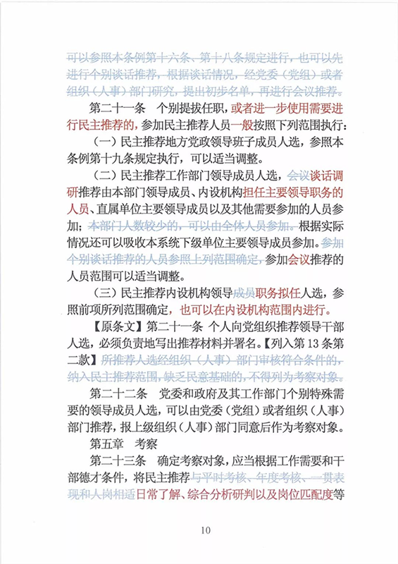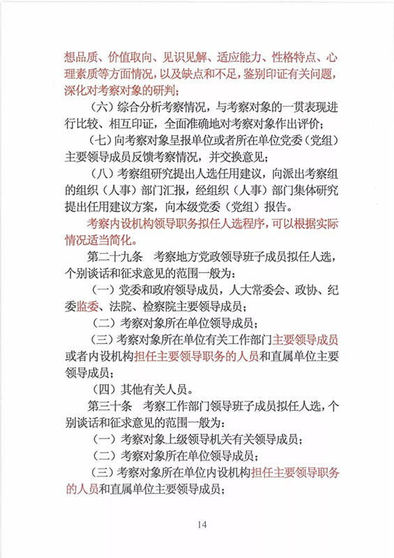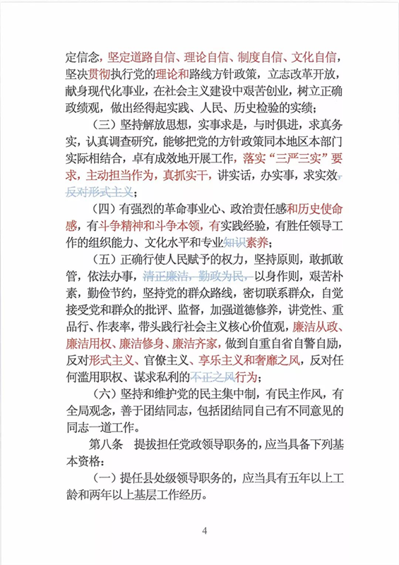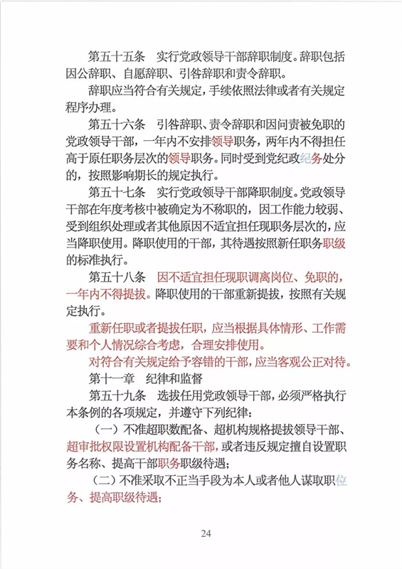 近日,中央印发了新修订的《党政领导干部选拔任用工作条例》。自1995年《党政领导干部选拔任用工作暂行条例》颁布以来,党中央先后于2002年、2014年两次作出修订,为规范干部选拔任用工作、建立健全科学的选拔任用机制、加强干部队伍建设、提高党的领导水平和执政能力发挥了十分重要的作用。同时,随着形势的发展和干部工作实际的变化,适应新时代的需要,有必要对其进行修改完善。