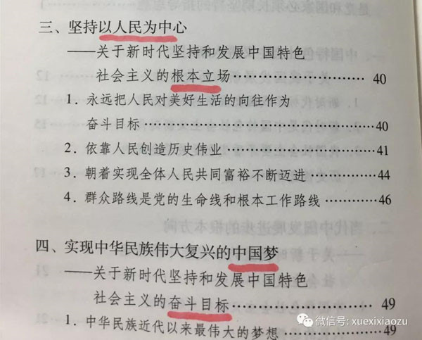 二是重要的基本理论命题,对应《学习纲要》的第三到第八章,分别介绍了关于新时代坚持和发展中国特色社会主义的根本立场、奋斗目标、战略安排、领导力量、根本动力、本质要求,既体现了对马克思主义基本原则的遵循,又体现了鲜明的中国特色。