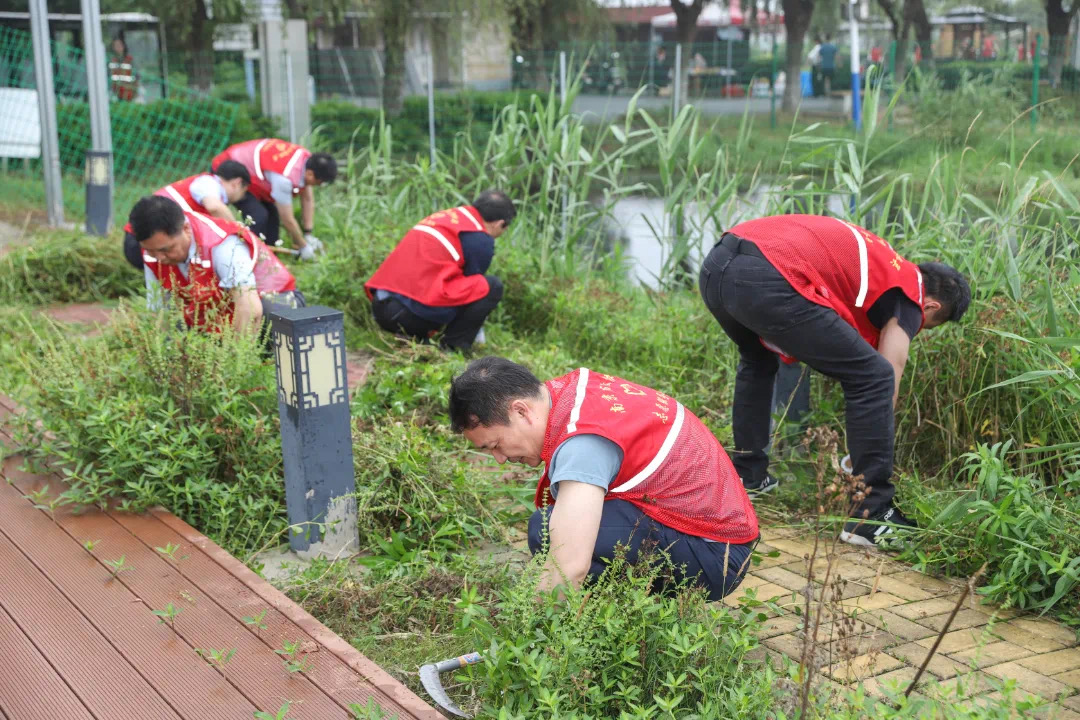随后,党员们“兵分三路”开展环境整治志愿服务:部分党员拿起镰刀,对该村水一方景区内道路两侧杂草进行割除;部分党员沿着景区道路,捡拾清理白色垃圾;部分党员下到水塘中,清除水草和漂浮的杂物。市、区政协机关参加此次志愿服务活动的30多名党员同志干劲十足、分工协作、有序配合,用实际行动展现了志愿者的风采。
