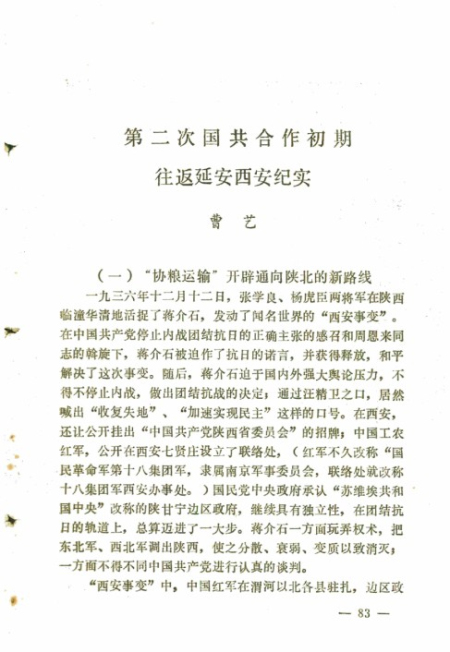 第二次国共合作初期往返延安西安纪实