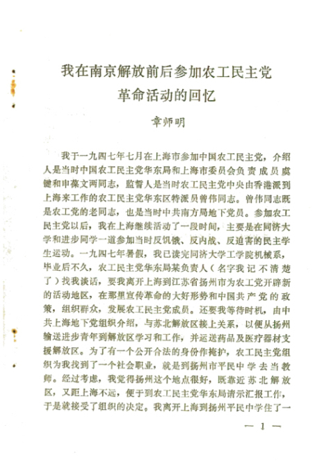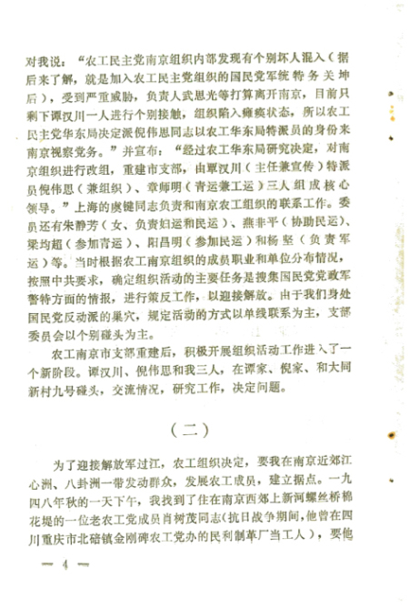 我在南京解放前后参加农工民主党革命活动的回忆