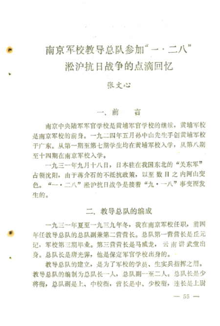 南京军校教导总队参加“一·二八”淞沪抗日战争的点滴回忆