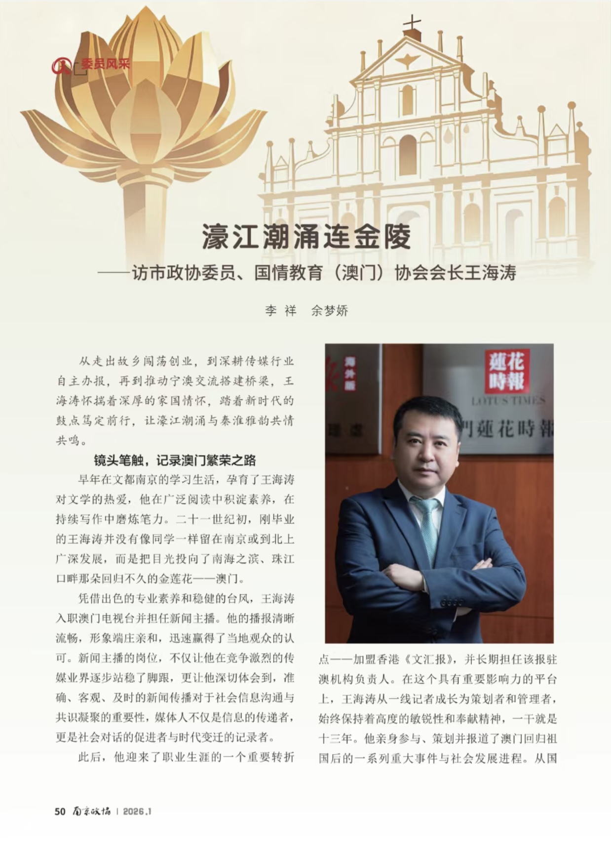 濠江潮涌连金陵——访市政协委员、国情教育(澳门)协会会长王海涛
