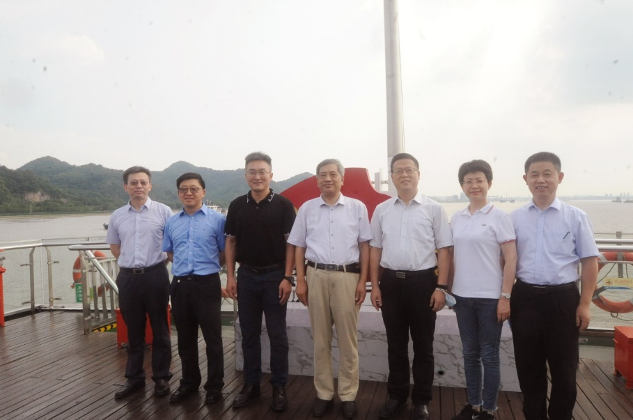 王汝成副主席一行实地调研“长江传奇号”游轮运营情况,并乘坐游轮视察了八卦洲、浦口轮渡码头、幕燕滨江风光带、南京长江大桥、燕子矶公园等岸线地标,随后召开座谈会。