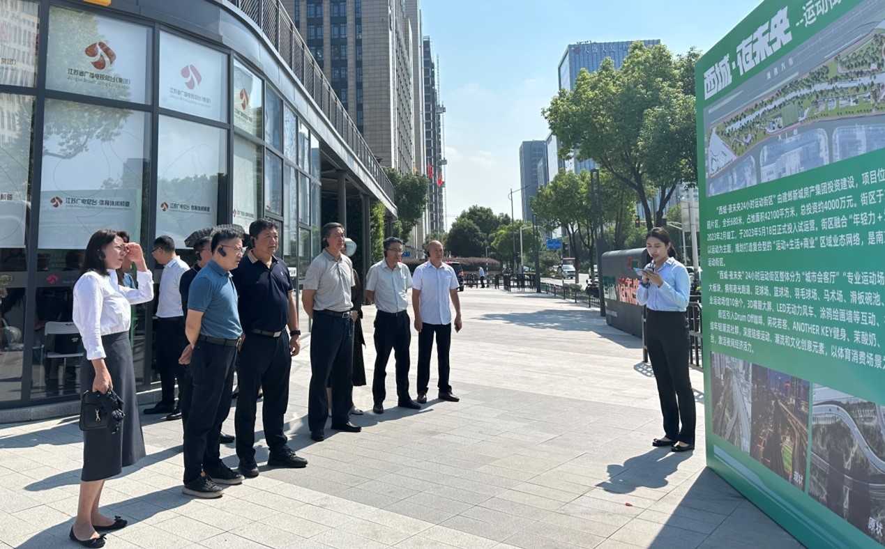 傅阳一行来到西城·夜未央24小时运动街区,穿行在“城市会客厅”“专业运动场”“无界综合运动场”等板块,切实感受到了街区的无限创意、青春活力和富有前瞻性的商业运营模式。街区紧靠河西大街,东起西城路,西至云龙山路,全长680米,占地面积42100平方米,由建邺新城房产集团投资建设,于2023年5月18日正式投入试运营。街区现拥有夜光跑道、足球场、篮球场、羽毛球场、滑板碗池、射箭馆等专业运动场馆10余个,咖啡馆、酒吧、餐饮店、便利店等商业载体12家,3D裸眼大屏、LED无动力风车、涂鸦绘画墙等互动、打卡场所6处,融合“年轻力+城市品牌”的建设理念,通过园区内现有边角地块的有机更新,串联起商业综合体、绿地公园、办公载体空间等多种业态,共同打造“公园+街区式商业”,引领新型时尚潮流,打造南京首家24小时不打烊示范街区。