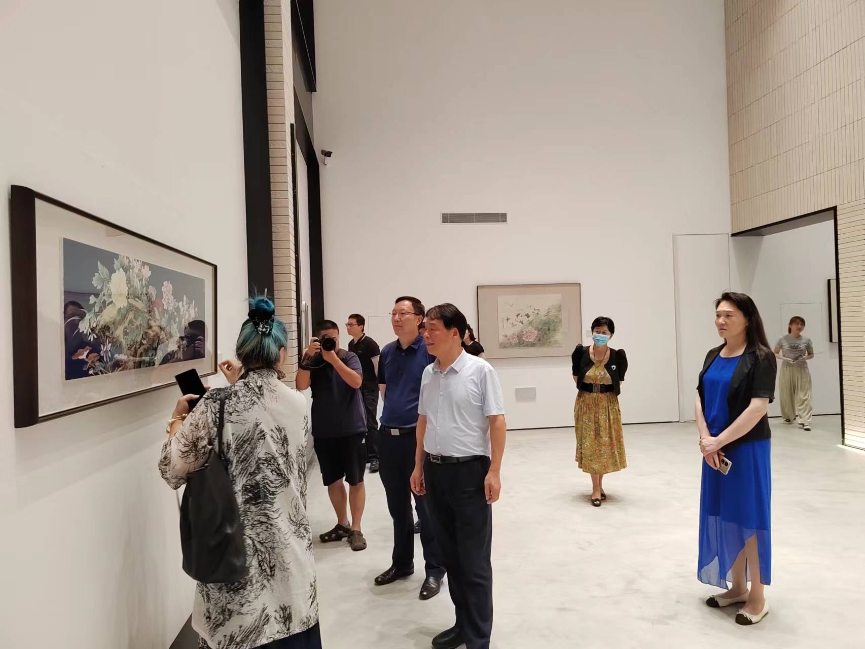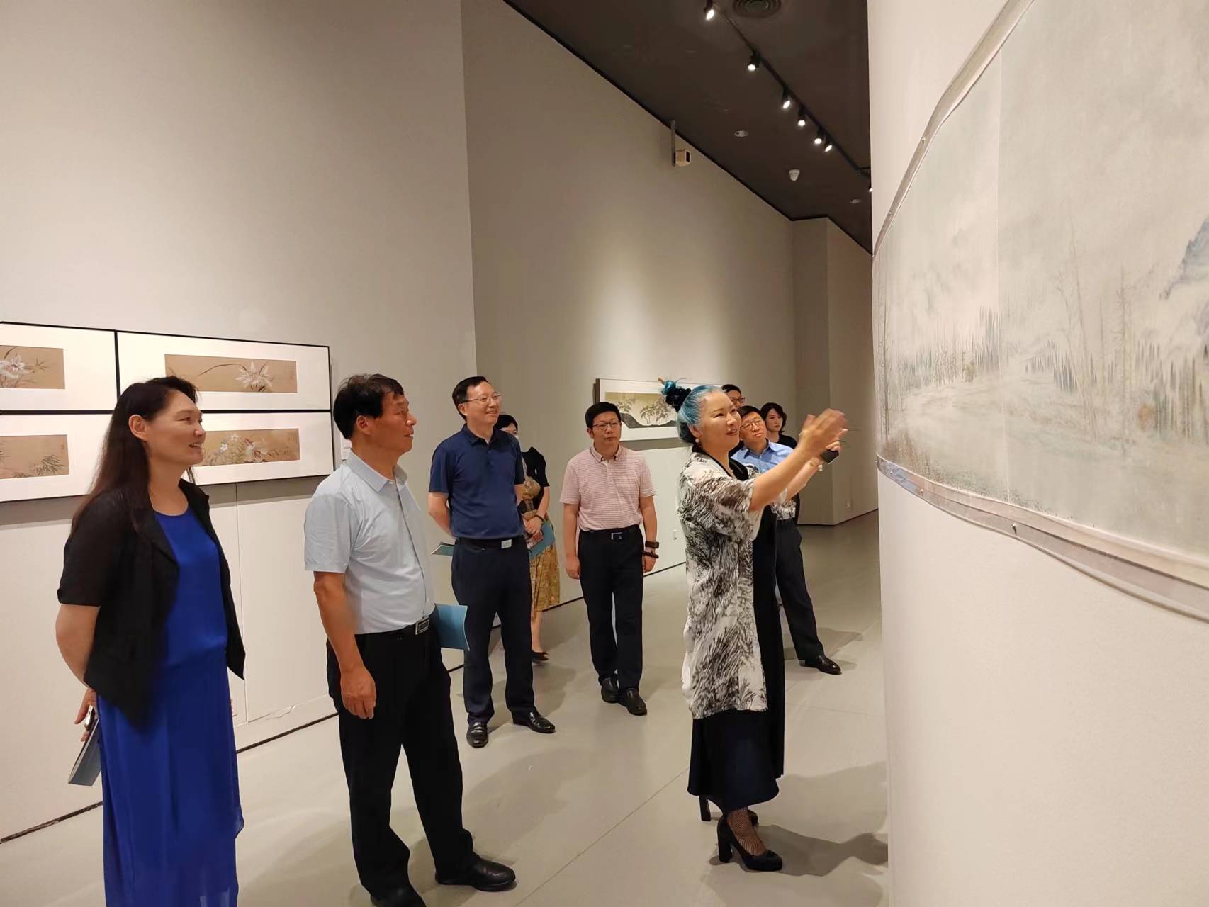李奇一行边走边看,边看边听,仔细品味,不时交流。李奇指出,艺术家姚媛多年来在坚守中国传统绘画的基础上,融入当代生活中的一些创新元素,从而达到“古”与“新”巧妙糅合的个人艺术特色这一创作思路难能可贵;担任市政协委员和南京市政协书画院副院长履职工作尽心尽力、高度负责、值得肯定。
