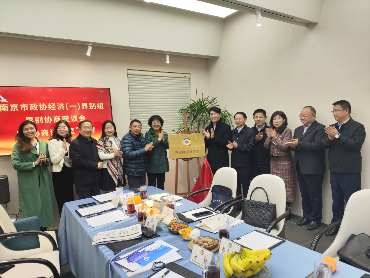 揭牌仪式前,经济(一)界别组召开协商座谈会,界别组召集人、博学建设投资集团董事长王强主持会议。与会委员们认真学习了市政协王立平主席关于提案工作的最新要求、《政协南京市委员会提案工作奖励办法》《关于建好用好界别协商议事室 推动政协委员更好联系服务界别群众的实施方案》等相关文件精神,研究了界别组集体提案选题,并结合个人履职感想,就如何进一步发挥好界别组作用进行了深入探讨。委员们一致表示,要进一步提升履职能力,用好协商议事室平台,努力推动界别履职活动取得新成效。