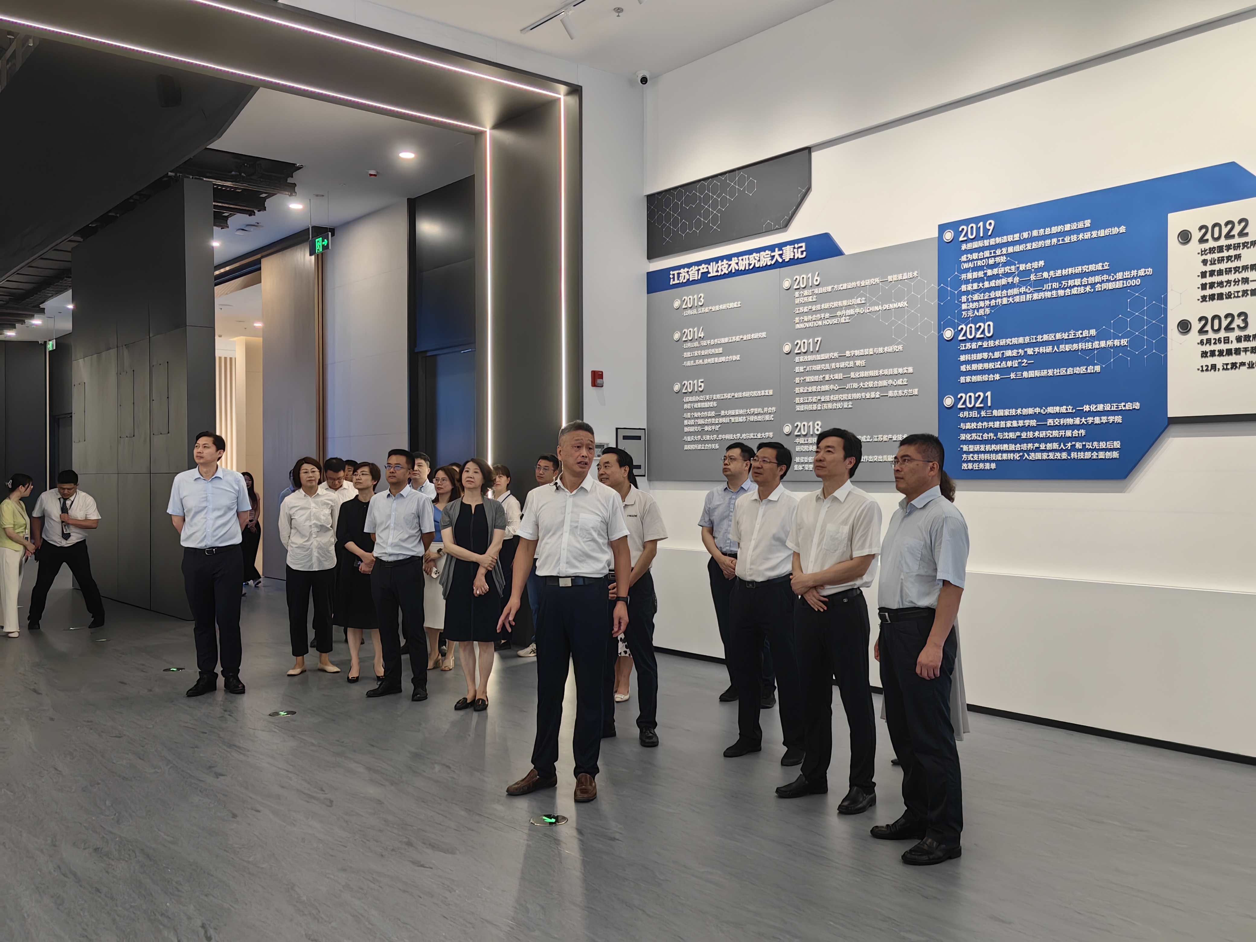 调研组在宁期间,先后考察了江苏省产业技术研究院、江苏集萃智能制造技术研究所有限公司和焦点科技股份有限公司。江苏省产业技术研究院成立于2013年12月,以服务产业转型升级和引领产业创新发展为主要任务,着力于科学成果向产业技术的转化环节,为江苏建设具有全球影响力的产业科技创新中心和具有国际竞争力的先进制造业基地提供重要支撑。江苏集萃智能制造技术研究所有限公司成立于2016年9月,由江苏省产业技术研究院、骆敏舟智能制造核心团队与南京江北新区研创园共同发起成立。研究所聚焦虚拟工厂的设计、高端装备的研制与可制造执行系统的开发三大方向,已成功开发了5款协作机器人、9款室内无人车,应用于多个工业与生活场景,已为200余家国内外企业提供了智能工厂解决方案、自动化生产线开发、机器人产线升级服务。研究所围绕智能制造核心与关键技术引入高科技项目以及产业链上下游企业进行孵化,以知识产权方式入股,累计孵化企业34家、引进企业18家,涉及高端智能装备、精密视觉检测、芯片设计、工业软件系统、新材料等领域,培育高企8家、规上企业2家、独角兽企业1家。焦点科技股份有限公司成立于1996年,总部位于南京,是国家首批信息化试点单位,国家工业和信息化深度融合示范企业,国家首批电子商务示范城市试点项目单位,商务部电子商务示范企业。公司始终致力于将传统行业与互联网深度融合,先后将互联网引入外贸、保险、企业采购、教育、医疗等多个领域。凭借多年来的不断积累,旗下中国制造网已成为全球采购商寻找中国供应商以及贸易伙伴的重要网络渠道。