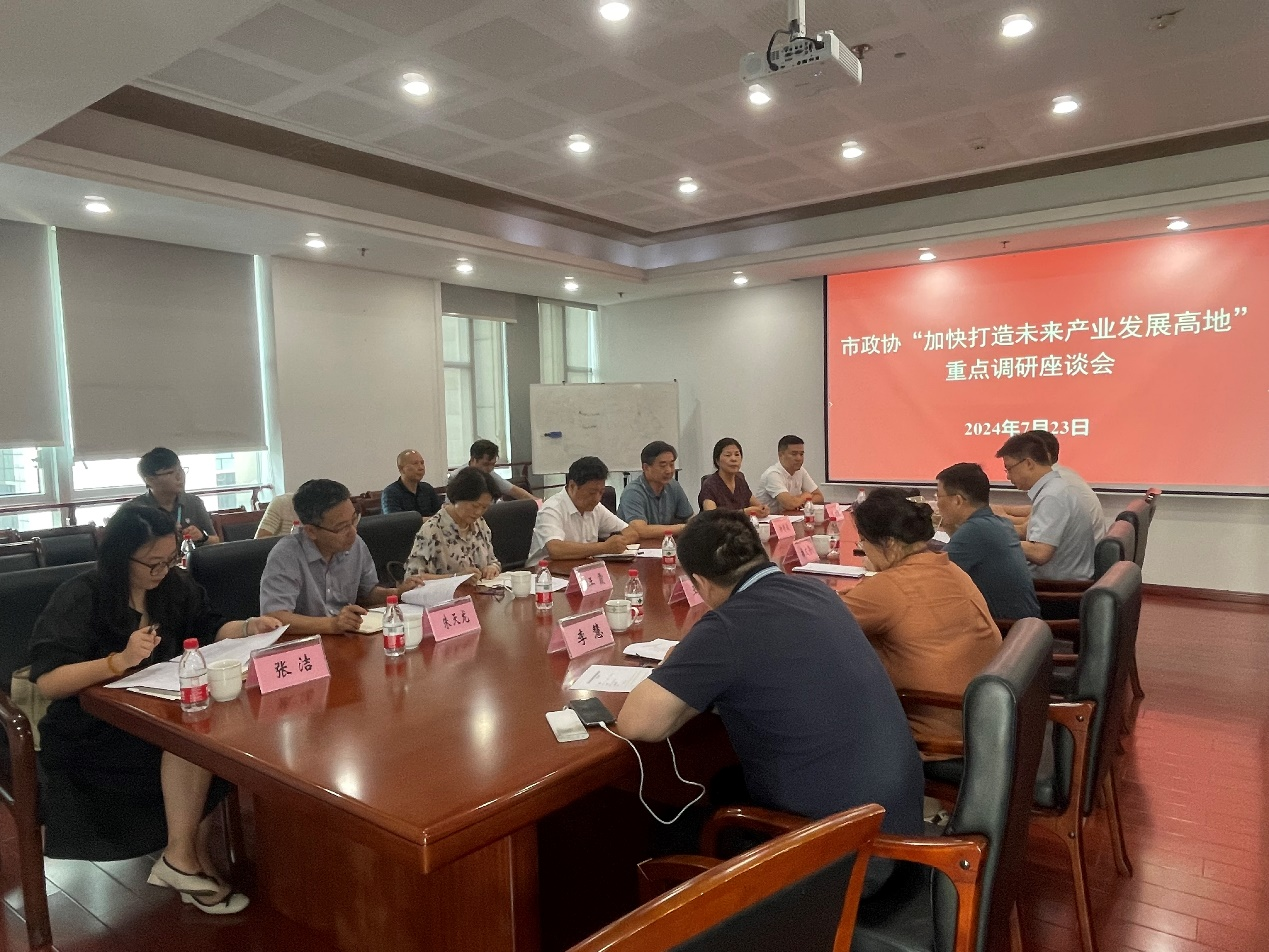 金融是国民经济的血脉,是国家核心竞争力的重要组成部分。营造良好的金融环境,加强金融监管,完善金融体制,优化资金供给结构和金融服务,对于推动战略性新兴产业,尤其是未来产业的孕育、成长、繁荣以及高质量发展具有至关重要的作用。为进一步了解金融在推动重要科创企业快速发展、增强我市金融服务实体经济能力、建立运用耐心资本、促进未来产业孵化与健康成长等方面的工作情况,7月23日下午,市政协副主席傅阳率领“加快打造未来产业高地”重点课题调研组一行,赴市委金融办开展专题调研。市政协人口资源环境(城市建设)委员会主任徐有俊主持座谈会。