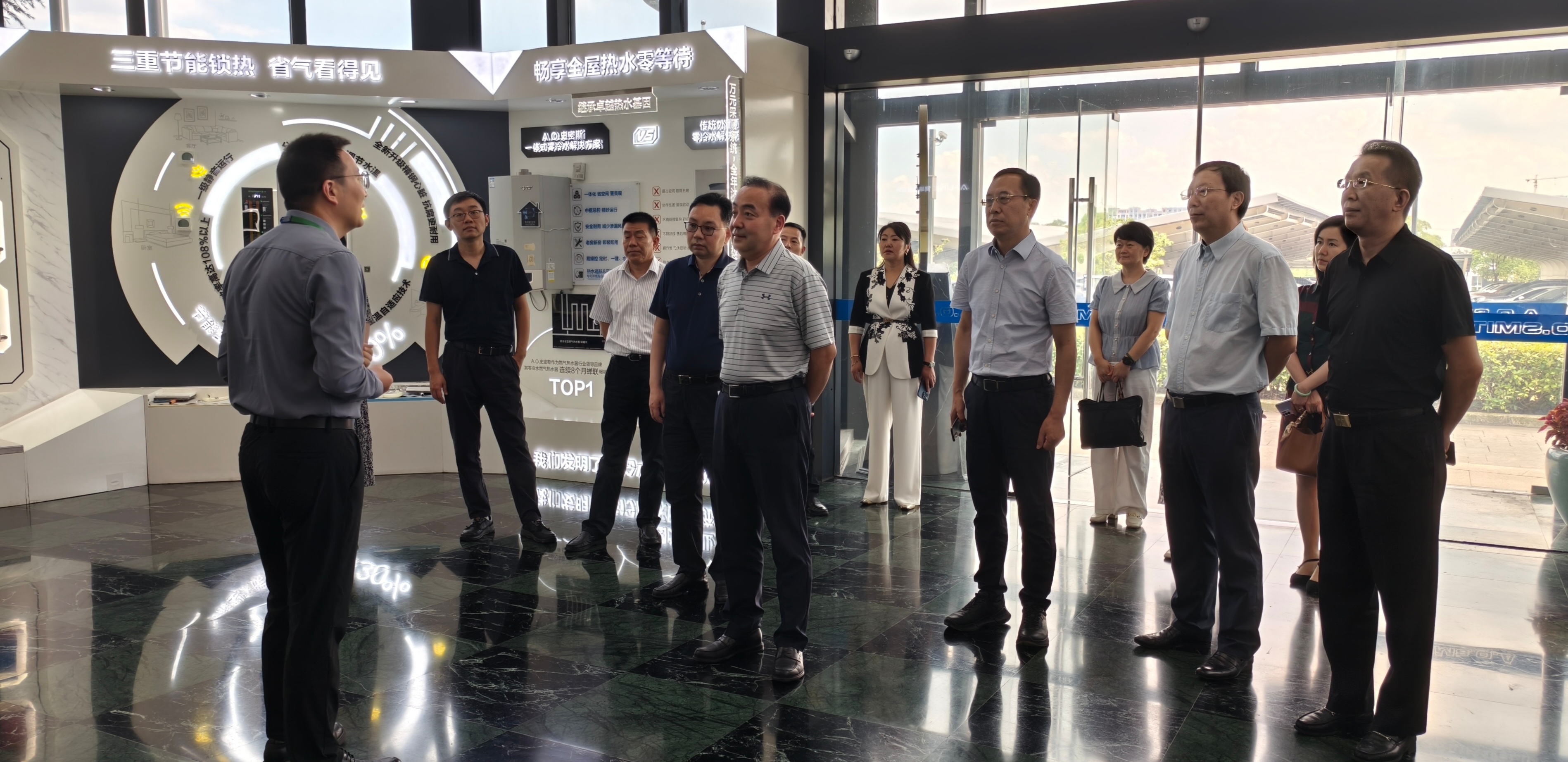 程永波副主席一行赴南京经济技术开发区考察了A.O.史密斯公司,听取该公司相关负责人关于企业文化、经营特色和产教融合工作开展情况的汇报。
