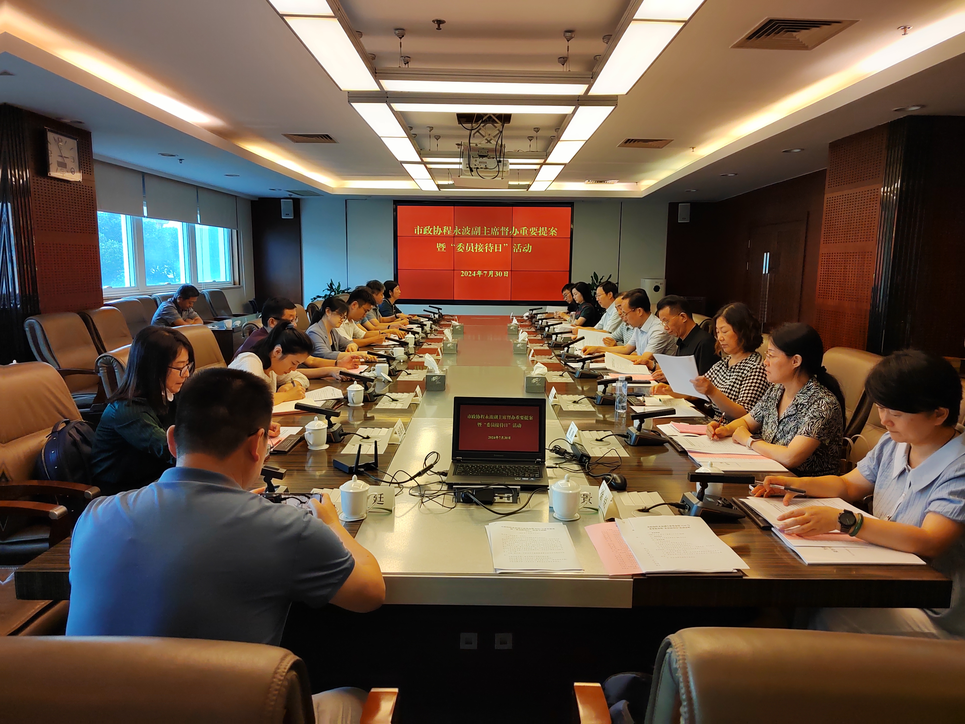 7月30日下午,市政协副主席程永波参加“关于抢抓机遇推进我市产教融合提质增效的建议”重要提案督办暨“委员接待日”活动。市政协副秘书长郭明雁主持督办座谈会,教卫体(文化文史)委员会主任张生,副主任、一级巡视员孙强等参加督办活动。
