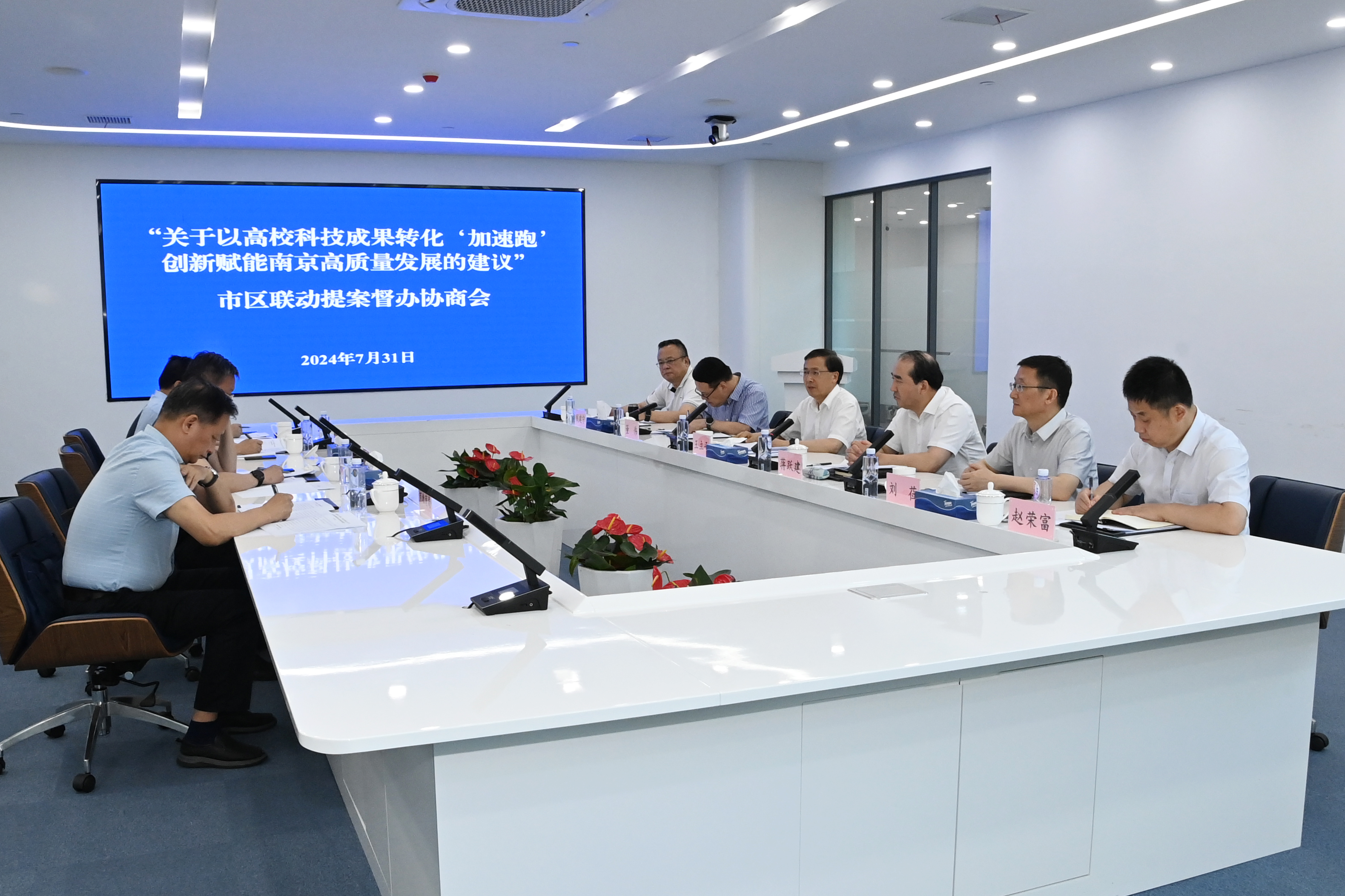 7月31日,市政协主席王立平督办“关于以高校科技成果转化‘加速跑’,创新赋能南京高质量发展的建议”市区联动提案。他强调,要认真学习领会党的二十届三中全会精神,深入贯彻落实习近平总书记关于深化改革、做好科技创新工作的重要讲话重要指示精神,畅通科技成果转化路径,促进高校和企业“双向奔赴”,为我市建设具有全球影响力的产业科技创新中心主承载区贡献更多智慧和力量。