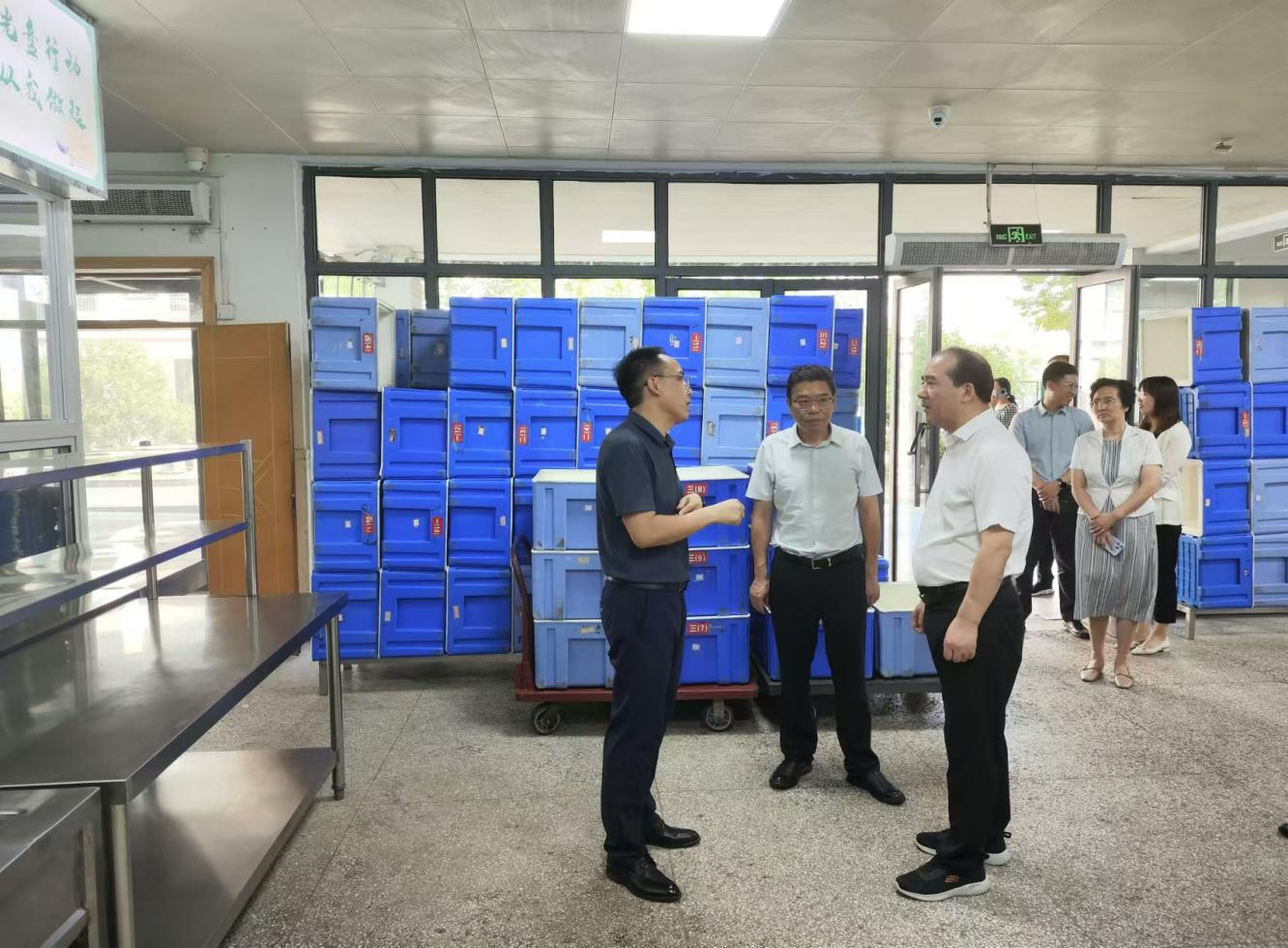 蒋跃建一行实地调研了江宁区将军山小学校园食堂管理情况,听取了该小学关于学校学生食材统一配供模式的汇报,仔细询问了食材进入校园的卫生检测手段、食品运输和存储中存在的风险隐患以及食品留样制度等,充分肯定了学校这方面做出的工作,并叮嘱校方要细化食堂管理规定,确保学生“舌尖上的安全”。