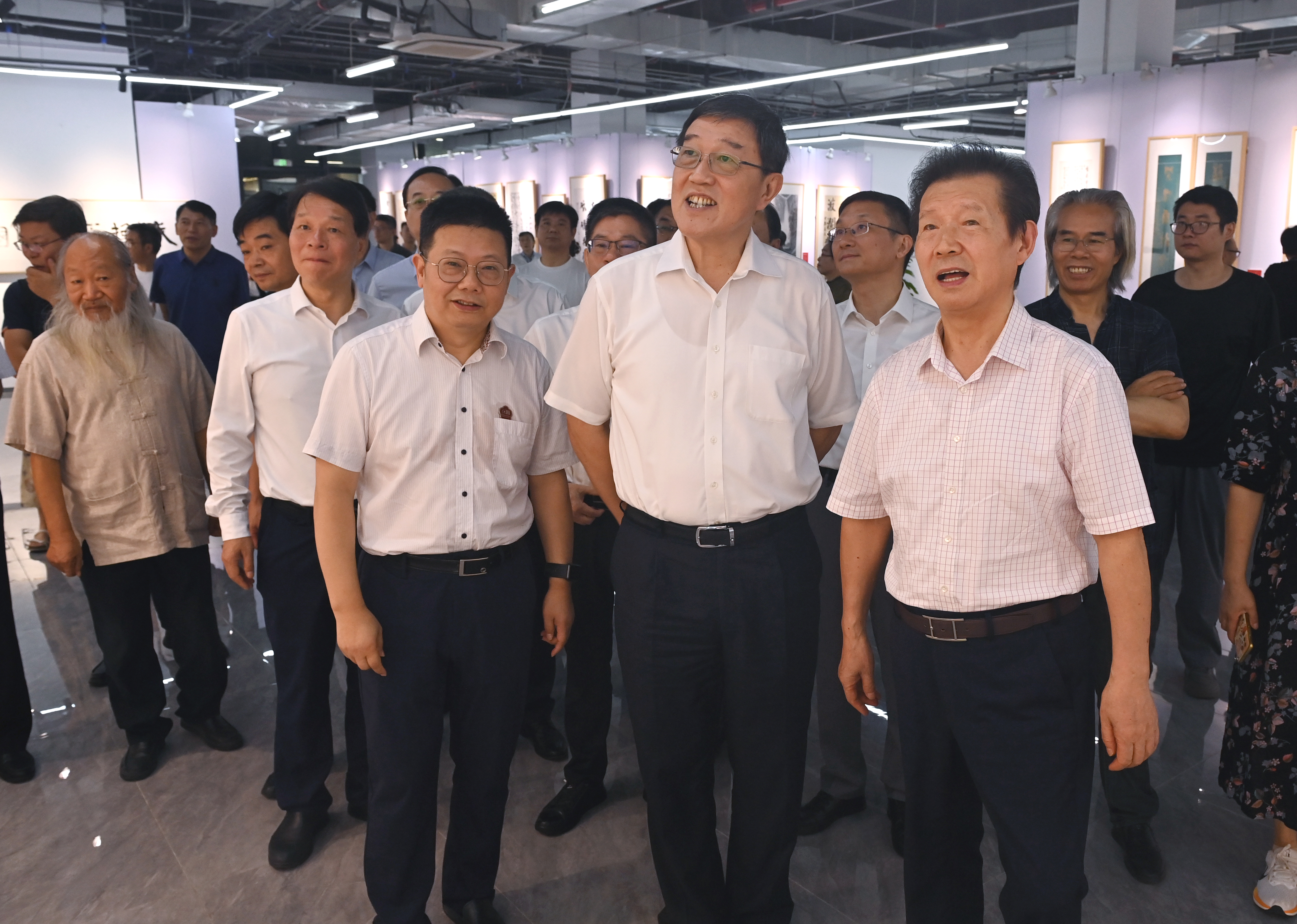 姚晓东在致辞中说,笔墨当随时代,书画鼓舞人心。省、市、区三级政协委员和书画家们怀着对祖国的无限热爱、对政协的浓浓深情,积极深入基层、深入群众、深入生活,用丹青书写伟大成就,用妙笔诠释沧桑巨变。参展的近百幅作品形式多样,内容丰富,融思想性与艺术性于一体,体现了浓郁的时代特色和较高的艺术价值,是全省政协组织向中华人民共和国成立75周年、人民政协成立75周年的深情献礼。