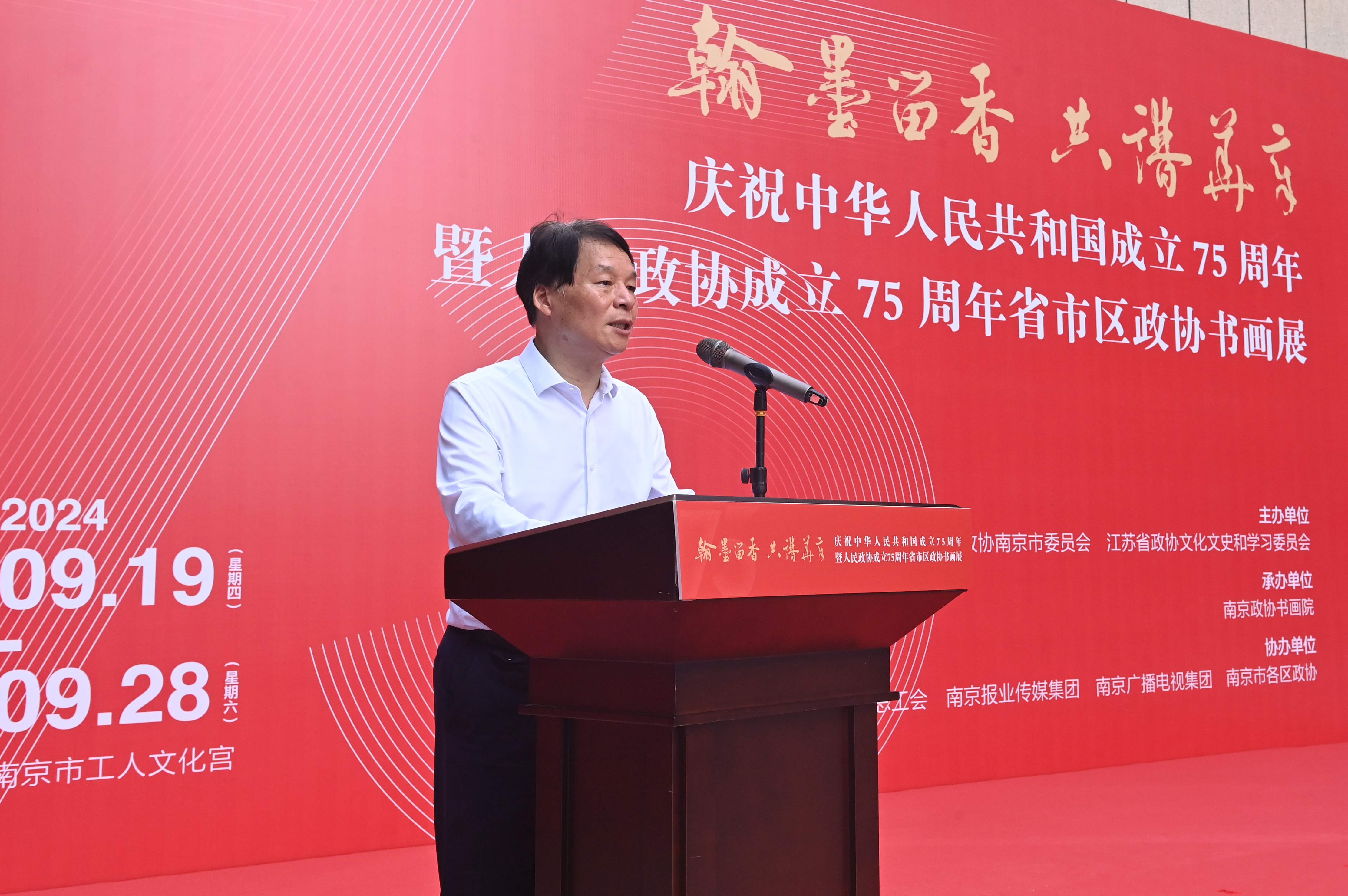翰墨丹青颂伟业,凝心聚力谱华章。为深入学习贯彻习近平新时代中国特色社会主义思想,热情讴歌中华人民共和国成立75年来的辉煌成就,江苏省政协文化文史和学习委员会、南京市政协主办,南京市总工会、南京报业传媒集团、南京广播电视集团、南京市各区政协协办,南京政协书画院承办了此次展览。