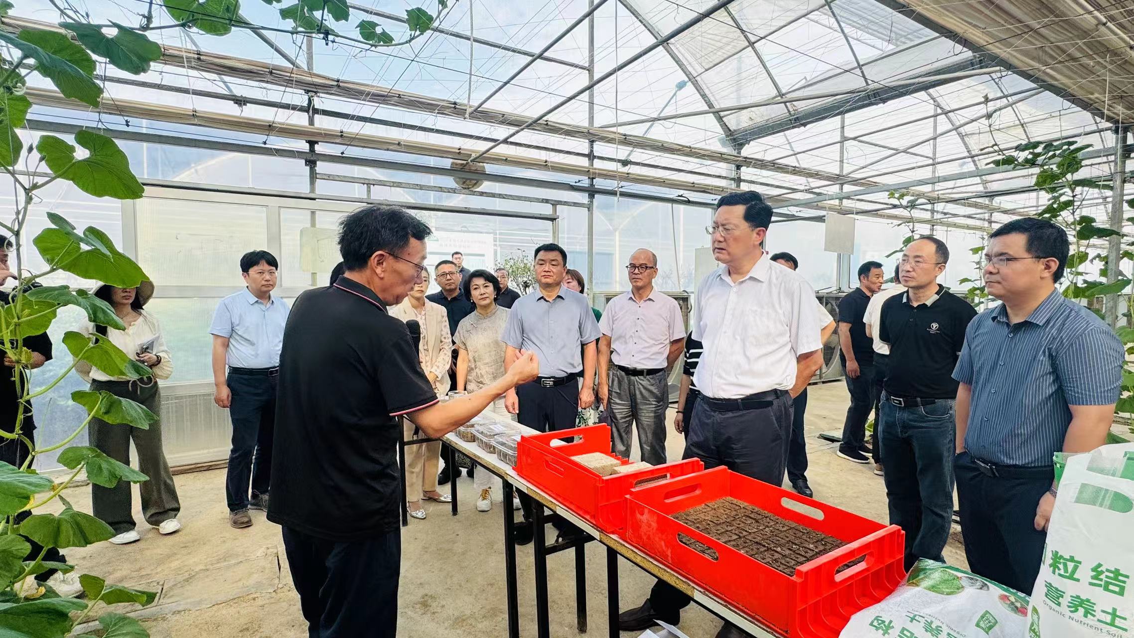 杨平指出,要深入贯彻落实习近平总书记关于树立大食物观,发展设施农业,构建多元化食物供给体系的重要讲话精神和党的二十届三中全会精神,切实推动落地、落细、落到实处。此次视察的两家蔬菜生产企业,有特色、有亮点、有成效,对于做好全市蔬菜产业“大文章”,具有一定的启示意义。扎实推动我市蔬菜产业高质量发展,需要切实做到三个“着力”。一是要着力优化蔬菜产业布局。大力引导涉农区结合区域内地形地貌状况、设施建设水平、生产技术专长及蔬菜产业发展优势和特点,进一步明确发展目标、不断优化蔬菜品种结构的区域布局及阶段性任务,确保蔬菜产业的市场效益持续提升。二是要着力培育特色蔬菜产业集群。充分依托喜闻乐见的大宗蔬菜品种,精心筛选符合当地消费习惯且具备抗病、高产的优质蔬菜品种开展规模化、标准化种植;同时突出补链强链,着力引进培育蔬菜加工能力强的农业龙头企业,不断做大做强蔬菜产业特色品牌,持续打造更多具有南京地方特色、品质优良、市场竞争力强的蔬菜类“拳头产品”。三是要着力加大先进科技推广力度。进一步提高全市蔬菜种植、采收、肥水灌溉等环节机械化水平;大力引进、示范推广绿色有机蔬菜,集成推广蔬菜绿色高产高效生产技术和管理经验,保障蔬菜产品质量安全,持续丰富市民“菜篮子”,不断提高广大城乡居民生活品质。