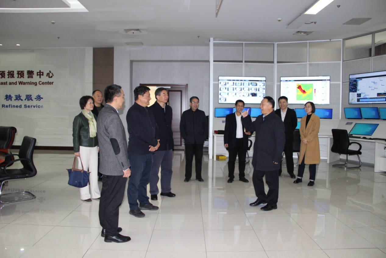 傅阳一行在市气象局副局长陈宁的陪同介绍下,实地调研了气象台预报大厅,听取了市气象台、市气象服务中心负责人关于大城市气象保障、低空经济气象服务以及专业气象服务等方面的工作成效和科技成果。近年来,全市气象部门牢记嘱托,奋发有为,以需求为牵引,以目标为导向,以气象现代化建设为主线,持续推进我市气象高质量发展,先后获得全国气象工作先进集体(人社部、中国气象局)、省气象现代化指标评分升至第一名、 全国重大气象服务先进集体等荣誉。