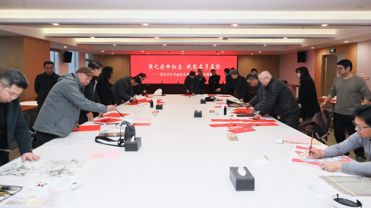 翰墨丹青走基层,迎春接福庆新年。为深入学习贯彻习近平文化思想,进一步深化市政协“联系群众、服务为民”履职长效机制,12月26日下午,市政协李奇副主席带领南京政协书画院的书画家走进南京报业传媒集团,开展“送文化、送卫生、送教育、送体育”活动。