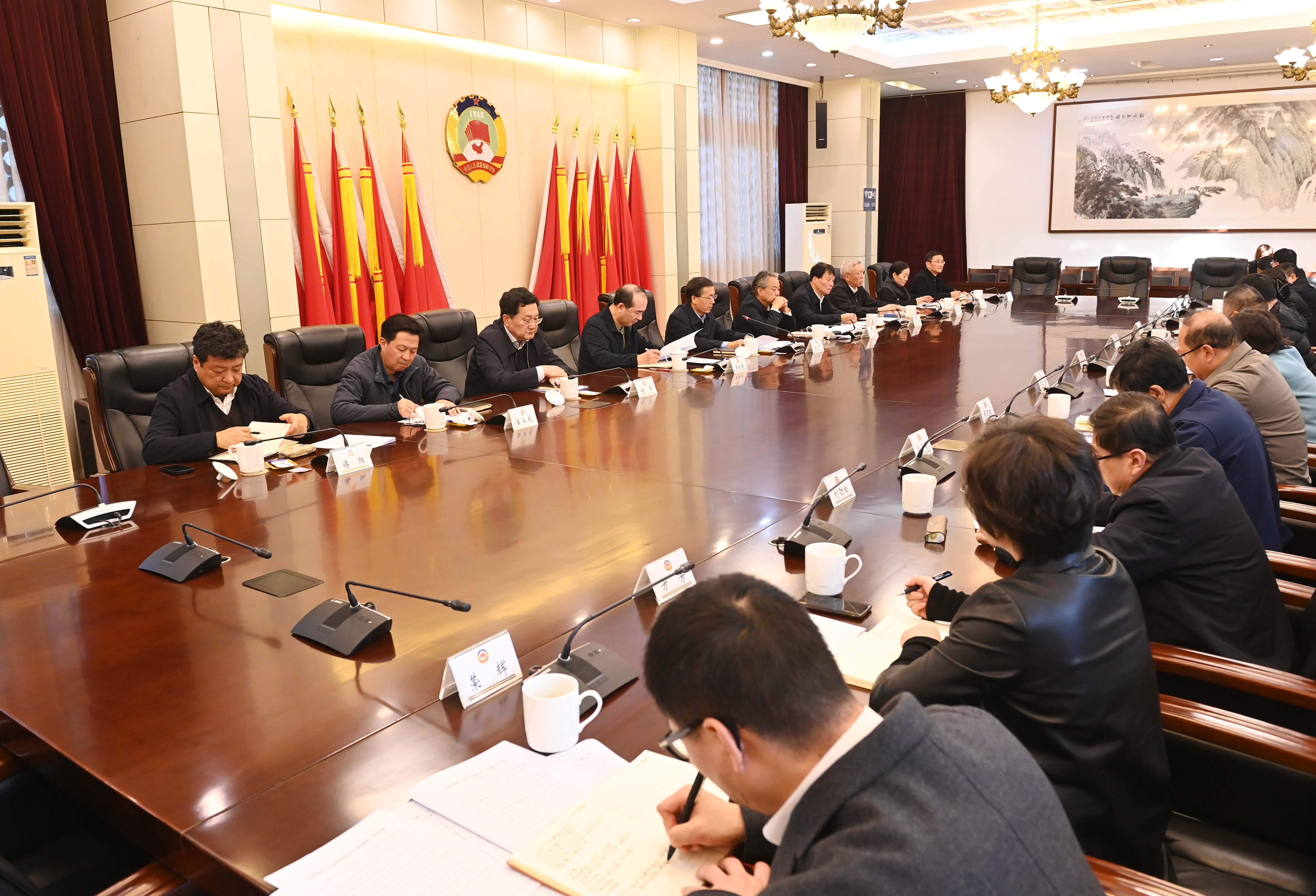 在听取市政协机关筹备全会各专项组工作情况汇报后,王立平指出,要充分认识开好市政协十五届四次会议是在全市上下深入学习贯彻党的二十届四中全会精神,系统总结“十四五”时期南京经济社会发展成就,全面开启“十五五”高质量发展新征程的关键时刻召开的一次重要会议,是全市人民政治生活中的一件大事。要全面贯彻落实市委关于贯彻厉行节约反对浪费、认真筹备好市政协全会的要求,主动加强与省政协和市委、市人大常委会、市政府办公厅等各方面工作联系,以高度的政治责任感做好政协全会筹备工作。要提高政治站位,紧扣中心大局,为南京高质量发展汇智聚力;加强思想引领,广泛凝聚共识,巩固拓展团结奋斗思想基础;强化责任担当,规范节俭办会,确保会议务实高效风清气正。