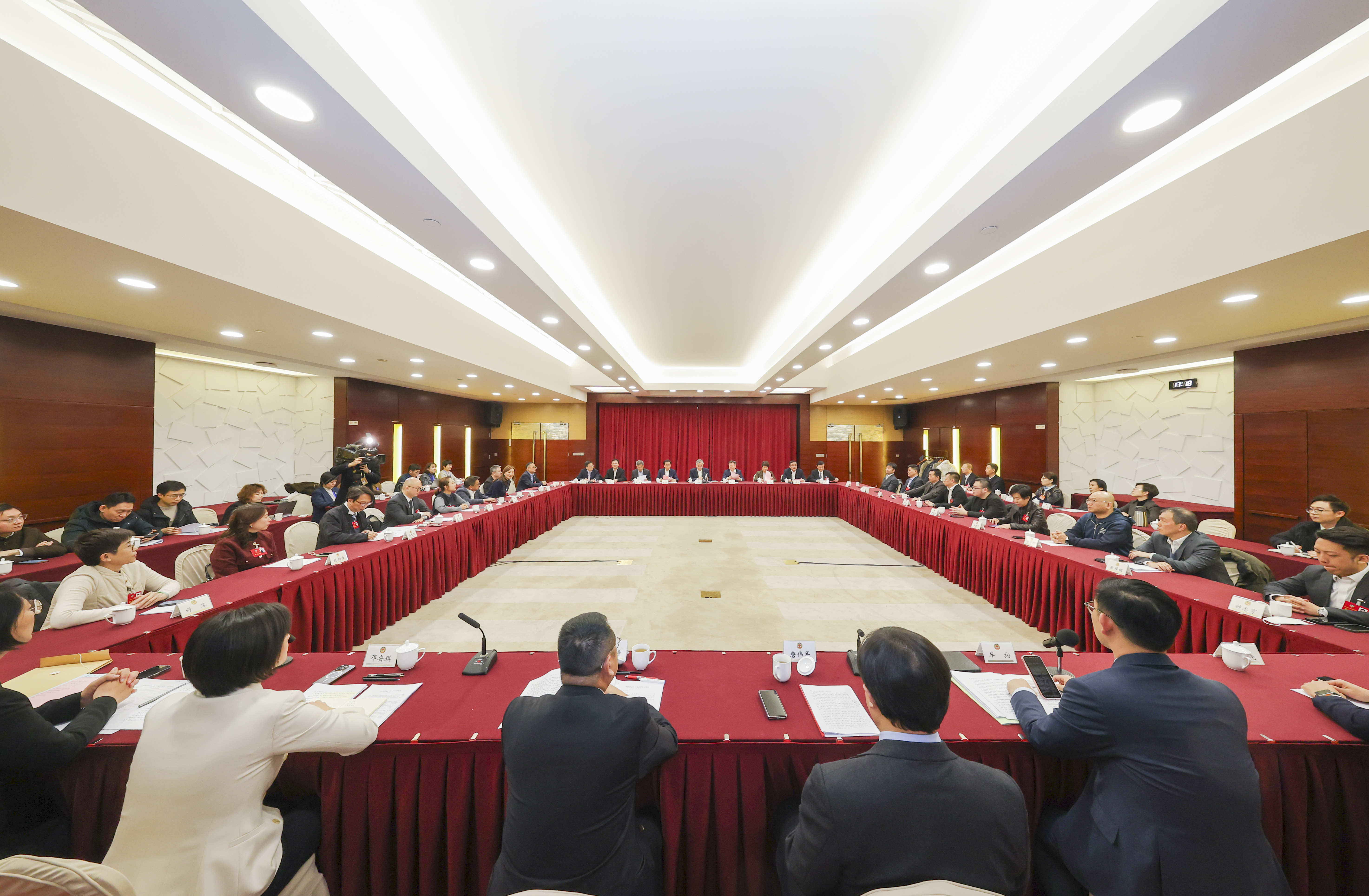 1月20日下午,市委书记周红波来到出席市政协十五届四次会议的政协委员住地,参加文艺、体育、新闻出版、社会科学、医药卫生界别联组审议,并与代市长李忠军、市政协主席王立平、市政协党组书记张宝娟一同看望港澳政协委员。