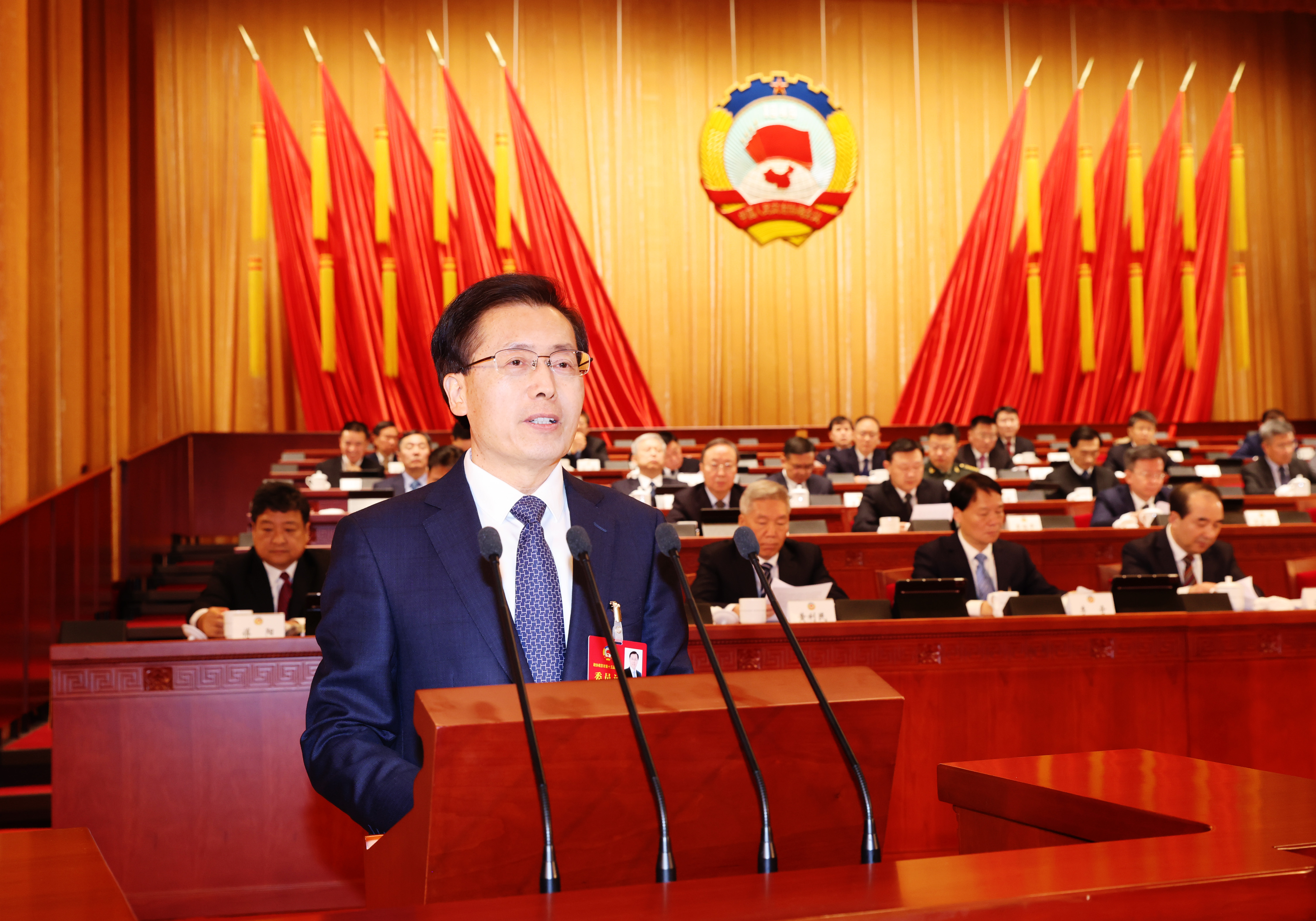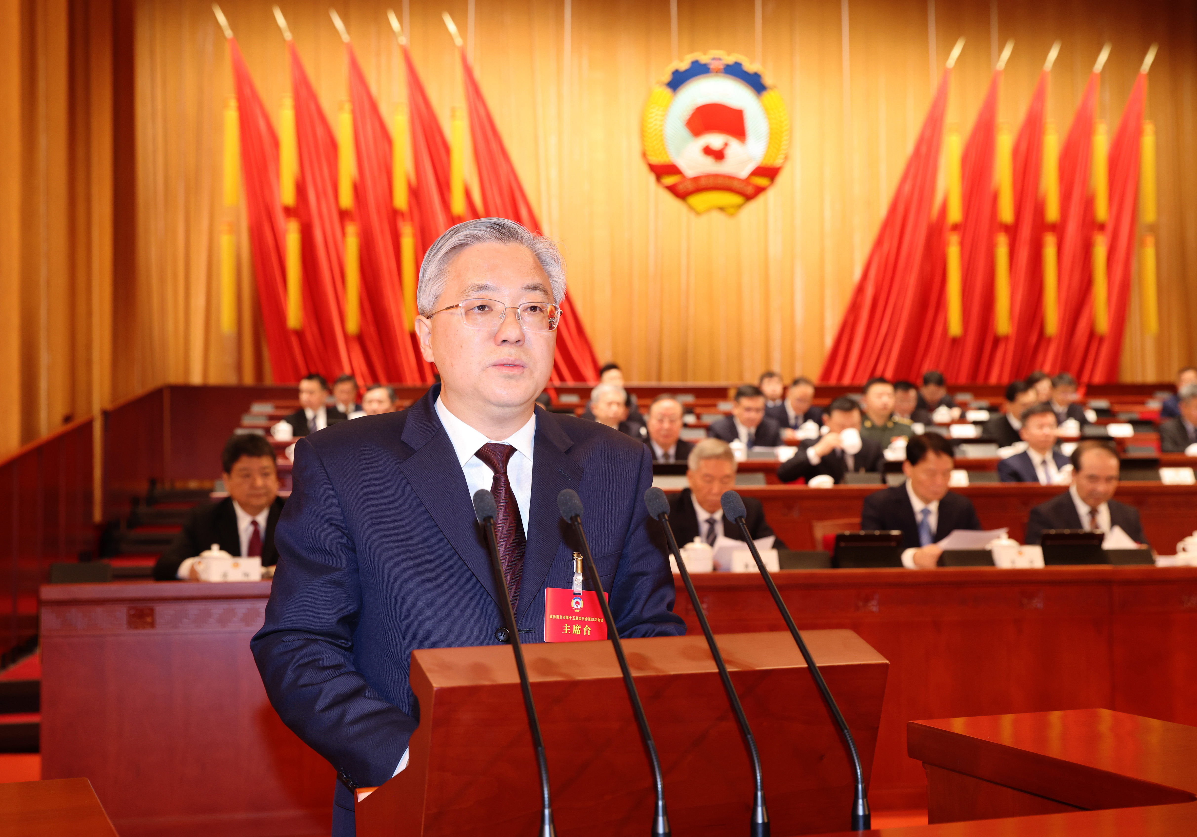 周红波代表中共南京市委向大会的召开表示热烈祝贺。他说,刚刚过去的2025年,是“十四五”收官之年。面对严峻复杂的外部环境和艰巨繁重的改革发展稳定任务,我们深入贯彻落实党的二十大和二十届历次全会精神,聚力打好“三大关键仗”“三大攻坚仗”,经济发展向新向好、更显韧性,产业攻坚全面发力、更见成效,民生保障可感可及、更有温度,城市精神昂扬向上、更具活力,高质量发展迈出了坚实步伐。回顾过去五年,习近平总书记多次对江苏工作发表重要讲话、作出重要指示,全市上下牢记嘱托、感恩奋进,一体落实“四个走在前”“四个新”“4+1”“四个着力点”等重大任务,“强富美高”宏伟蓝图正一步步在南京变为生动现实。成绩的取得,根本在于习近平总书记领航掌舵,在于习近平新时代中国特色社会主义思想科学指引,是全市人民砥砺前行、接续奋进的结果,也凝聚着各级政协组织和政协委员的智慧和汗水。