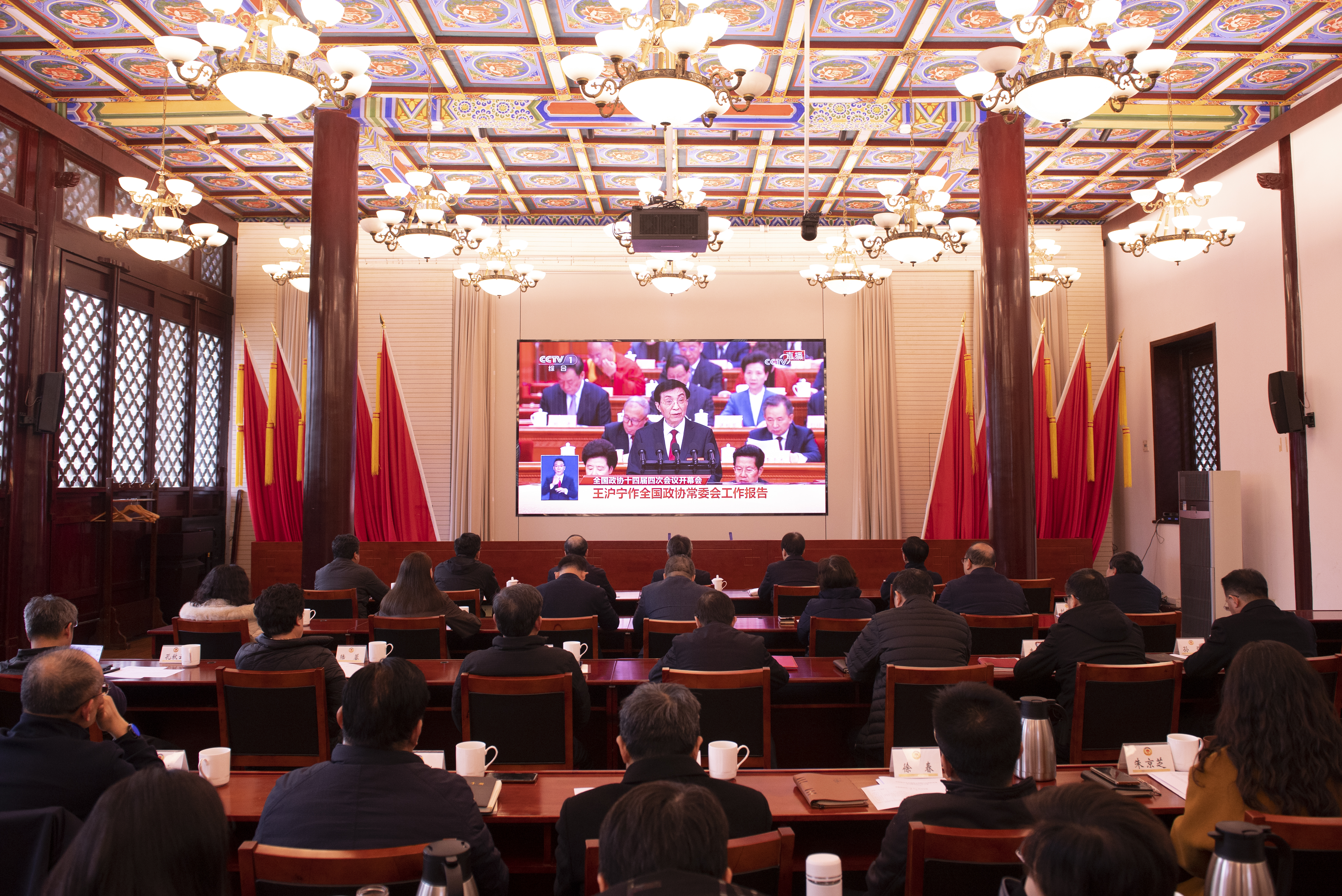 当天下午,市政协机关干部以及部分市政协委员在市政协资政堂,通过电视直播,认真听取全国政协主席王沪宁代表政协第十四届全国委员会常务委员会所作的工作报告。
