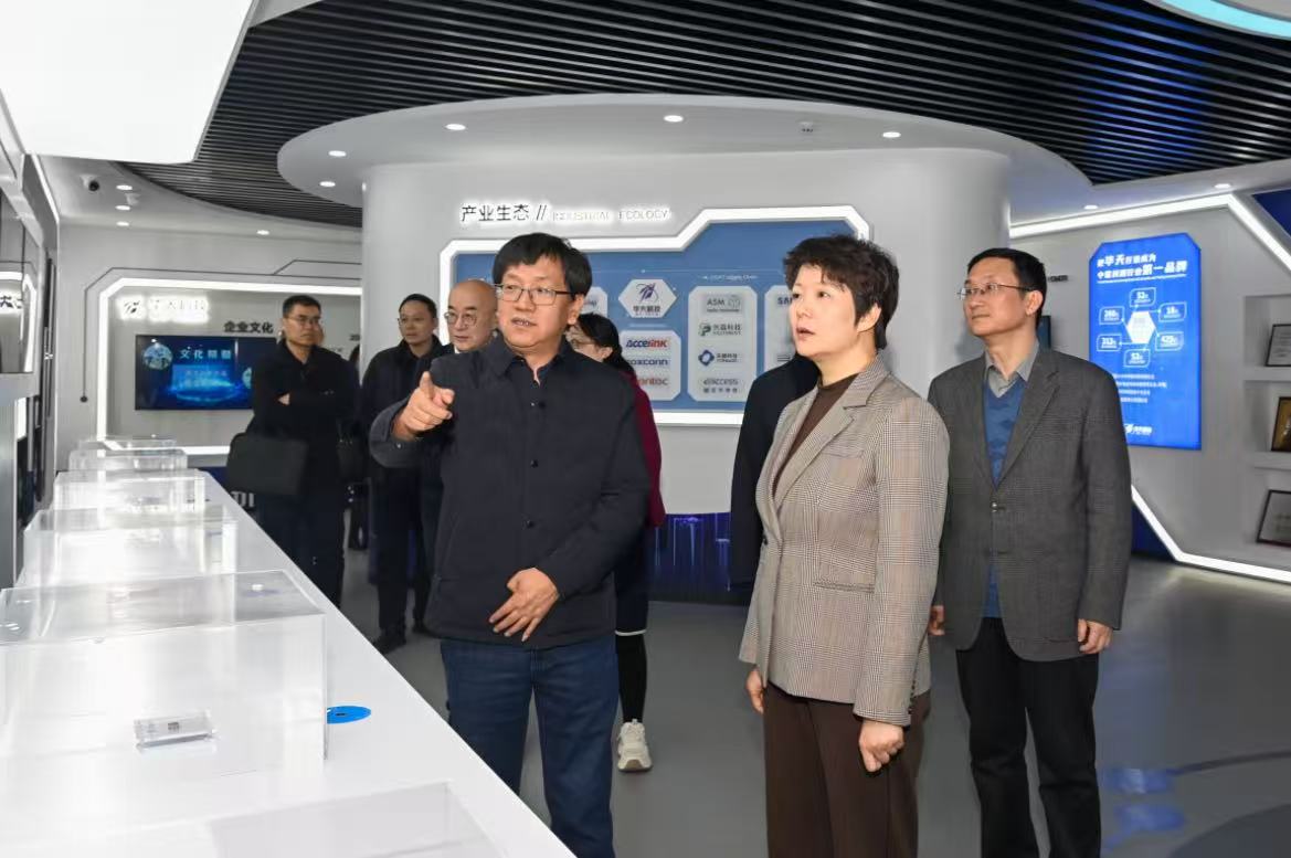 张宝娟先后走访华天科技(江苏)有限公司(简称“华天江苏”)、华天科技(南京)有限公司。华天科技是我国集成电路封测行业领军企业,在全球封测行业排名前六、国内前三。华天江苏自2024年投产以来,已累计完成投入资金超30亿元,打造具备国际先进水平的集成电路晶圆级先进封测基地,展现出强劲的发展势头。华天科技(南京)有限公司自2020年投产以来,累计完成投资超90亿元,2025年实现产值45.9亿元,二期项目正加快推进。张宝娟深入企业生产车间、研发中心和展示大厅,详细了解企业在集成电路封装测试领域的技术创新、产品应用、市场拓展等情况,认真听取企业当前发展面临的困难和意见建议。