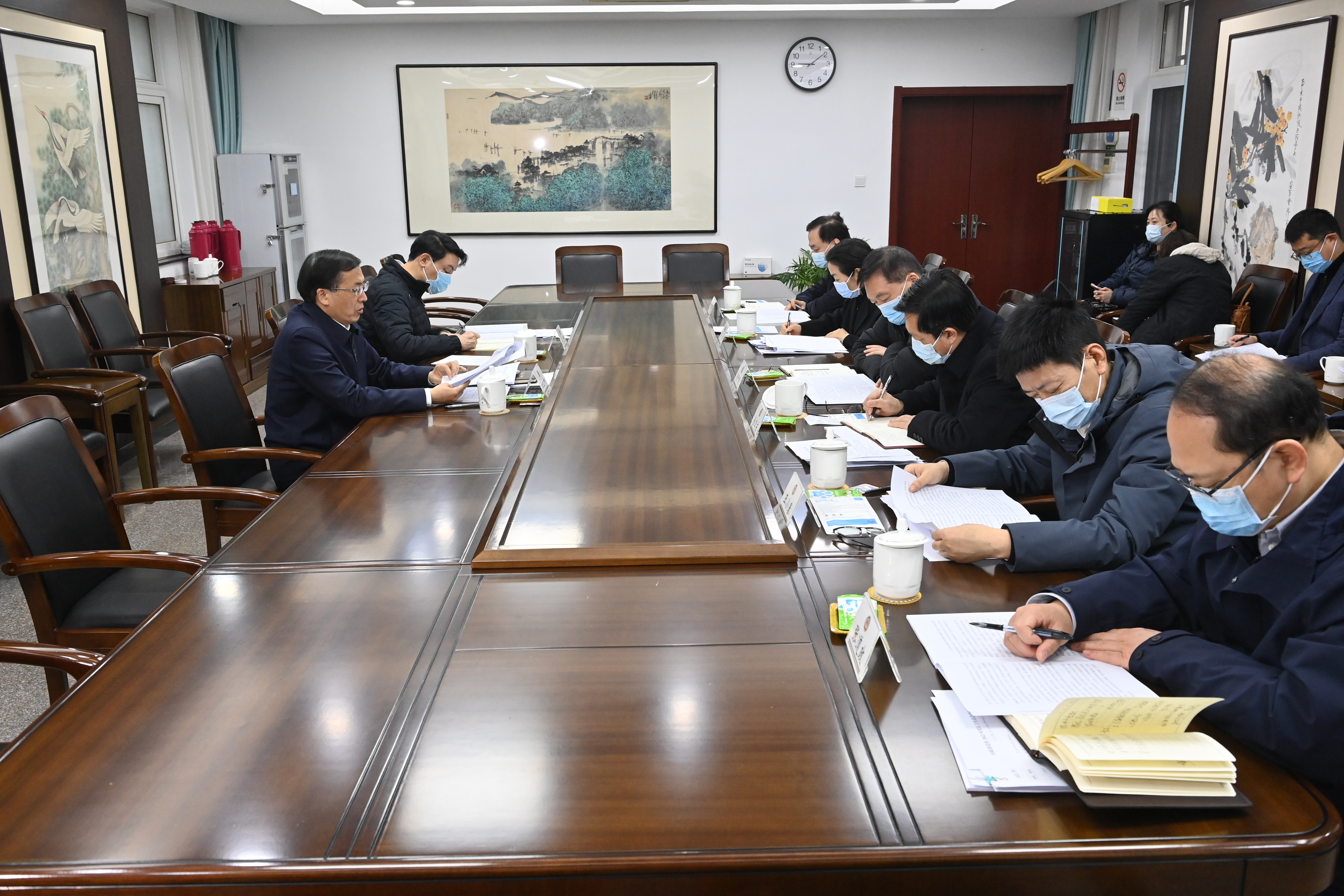 根据中央和省市委统一部署,2月10日,市政协党组召开2022年度民主生活会。会议以“全面贯彻习近平新时代中国特色社会主义思想,深刻领悟‘两个确立’的决定性意义,增强‘四个意识’、坚定‘四个自信’、做到‘两个维护’,团结带领党员干部群众以奋发有为的精神贯彻落实党的二十大做出的重大决策部署,为南京争当中国式现代化城市实践的示范引领贡献智慧力量”为主题,联系思想和工作实际,深入进行对照检查,严肃认真开展批评和自我批评。市政协党组书记、主席王立平主持会议并讲话。市政协党组副书记、副主席吴卫国,市政协党组成员、副主席黄利民、金卫东(兼秘书长)、黄辉出席会议。
