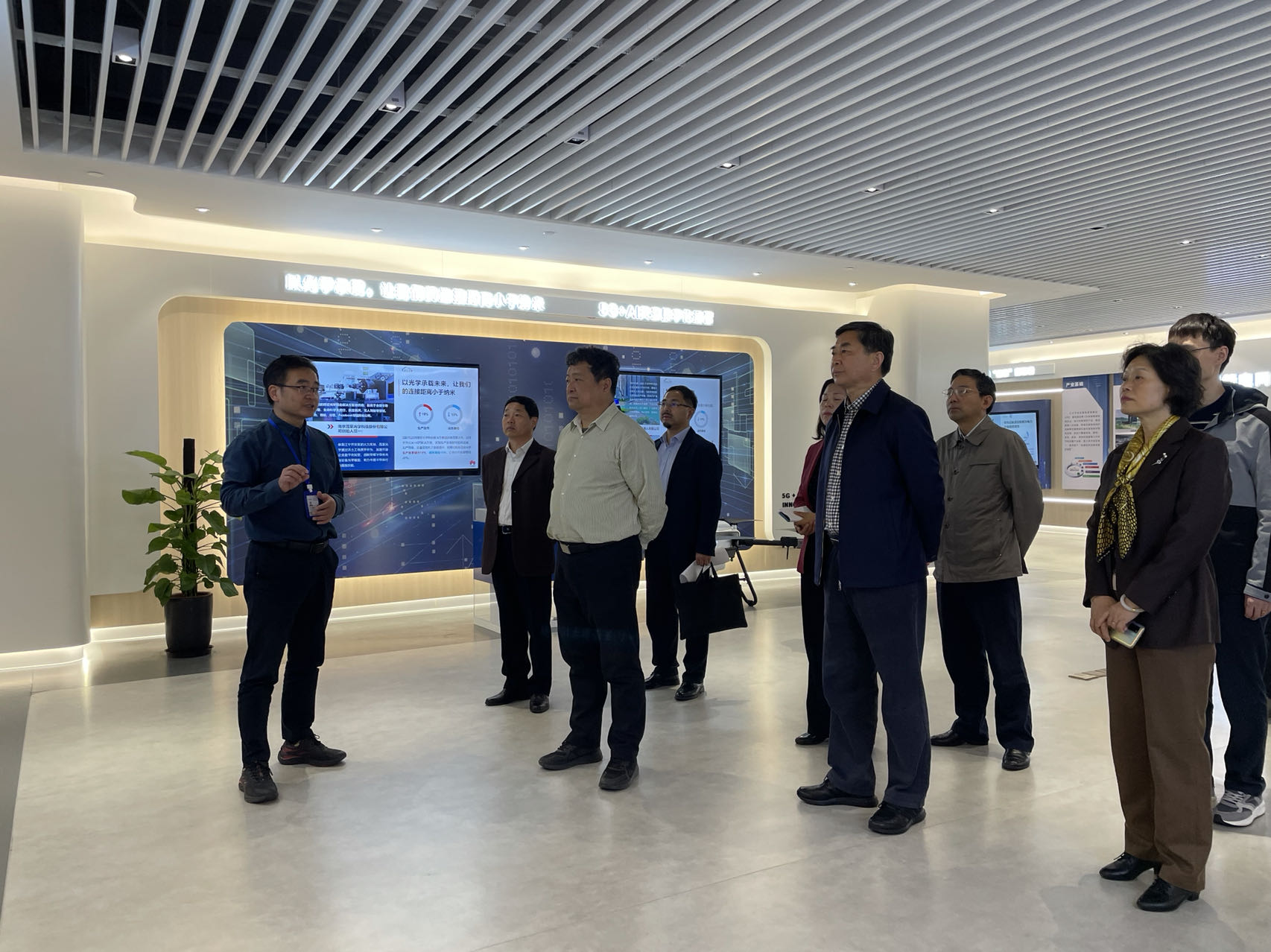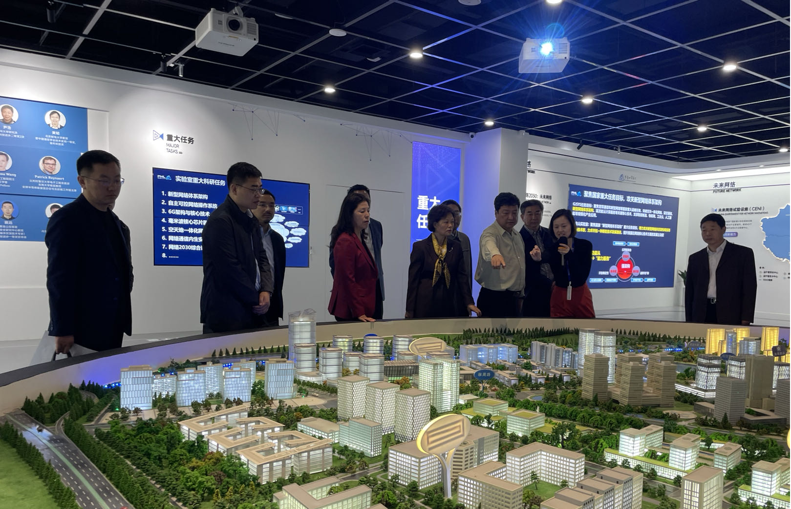 在紫金山实验室展厅,傅阳一行直观感受了实验室战略定位、“两翼一体”科研架构等整体建设情况,听取了实验室围绕国家重大战略需求,在未来网络、普适通信、内生安全三个研究领域的布局和所取得突破性成果介绍,并就网络操作系统、5G演进和6G发展、工业互联网等相关话题进行交流学习。紫金山实验室是我市打造的标志性重大科技创新平台,聚焦网络通信与安全等重点领域,开展基础性、前沿性研究和“卡脖子”技术攻关,在大网操作系统、CMOS毫米波芯片与大规模相控阵、内生安全理论体系及生态建设等方面取得了一系列关键技术突破和重大成果。